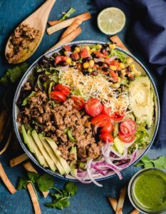 Hearty Salad Recipe - Ground Beef Taco Salad with Cilantro Lime Vinaigrette.