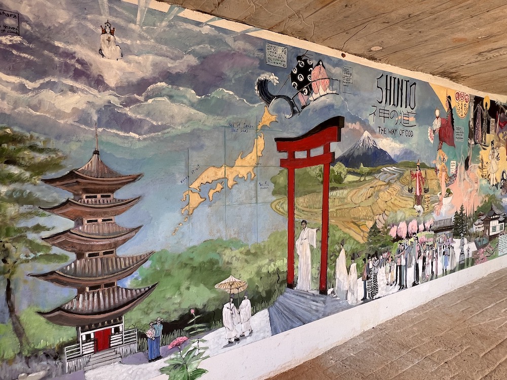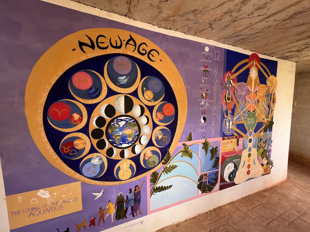 The murals depict how humankind has tried to understand life throughout the ages. The murals summarize key ideologies, stories, and applications of various philosophies and religions.